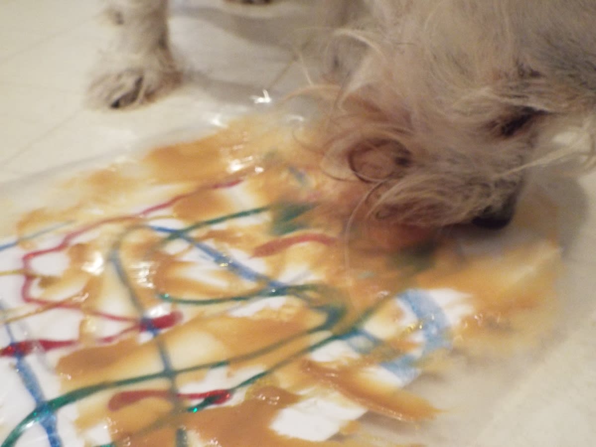 This can get messy so remove the cling wrap in an area where. But the folks over on TikTok taking a cue from a former viral sensation have. Once your dog has finished licking off the peanut butter pick up the canvas and slowly and carefully remove the cling wrap.